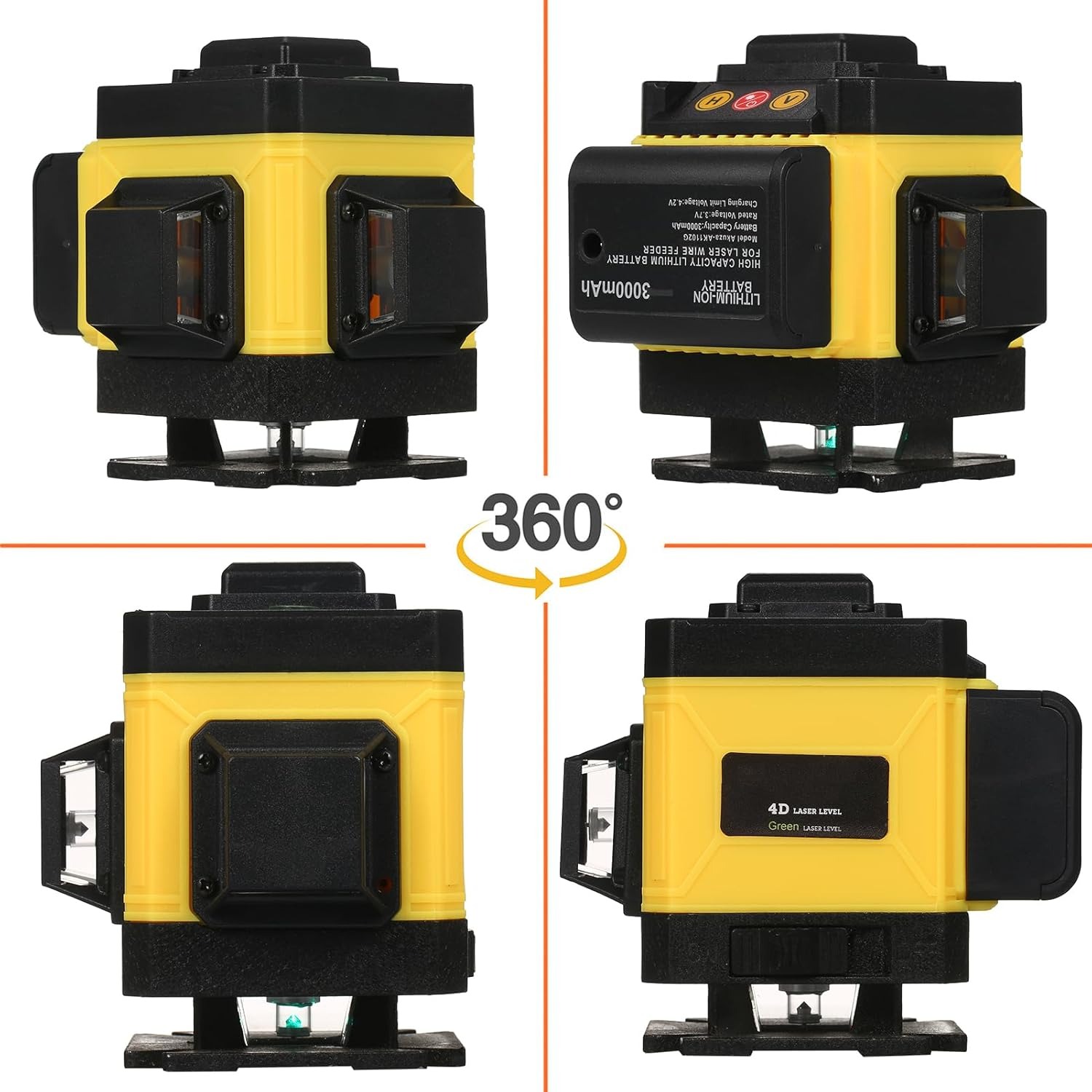 Лазерный уровень - имеет две 360° горизонтальные и две 360° вертикальные линии обеспечивают всестороннее покрытие нивелира на полу, стене, потолке по всей комнате.4D лазерный уровень обеспечивает всестороннее покрытие нивелира